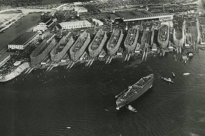 为什么这么猛?主要靠当时的经济实力顶着,美国那时GDP已经超过英国,成了全球第一,军工企业全开动,全国资源都往军舰生产上倾斜。船厂有50多家,军用民用都能转产,工人三班倒,供应链从钢铁到零件一条龙。